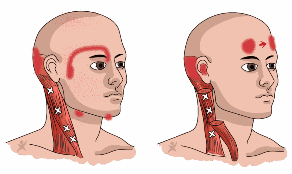 Mogelijke oorzaken van pijn in hoofd en nek door spierspanning: