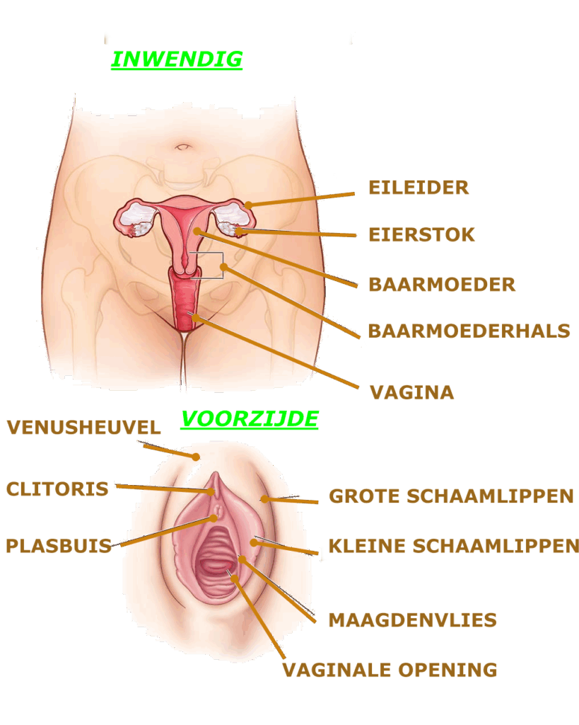 De vrouwelijke geslachtsdelen bestaan uit uitwendige en inwendige structuren.